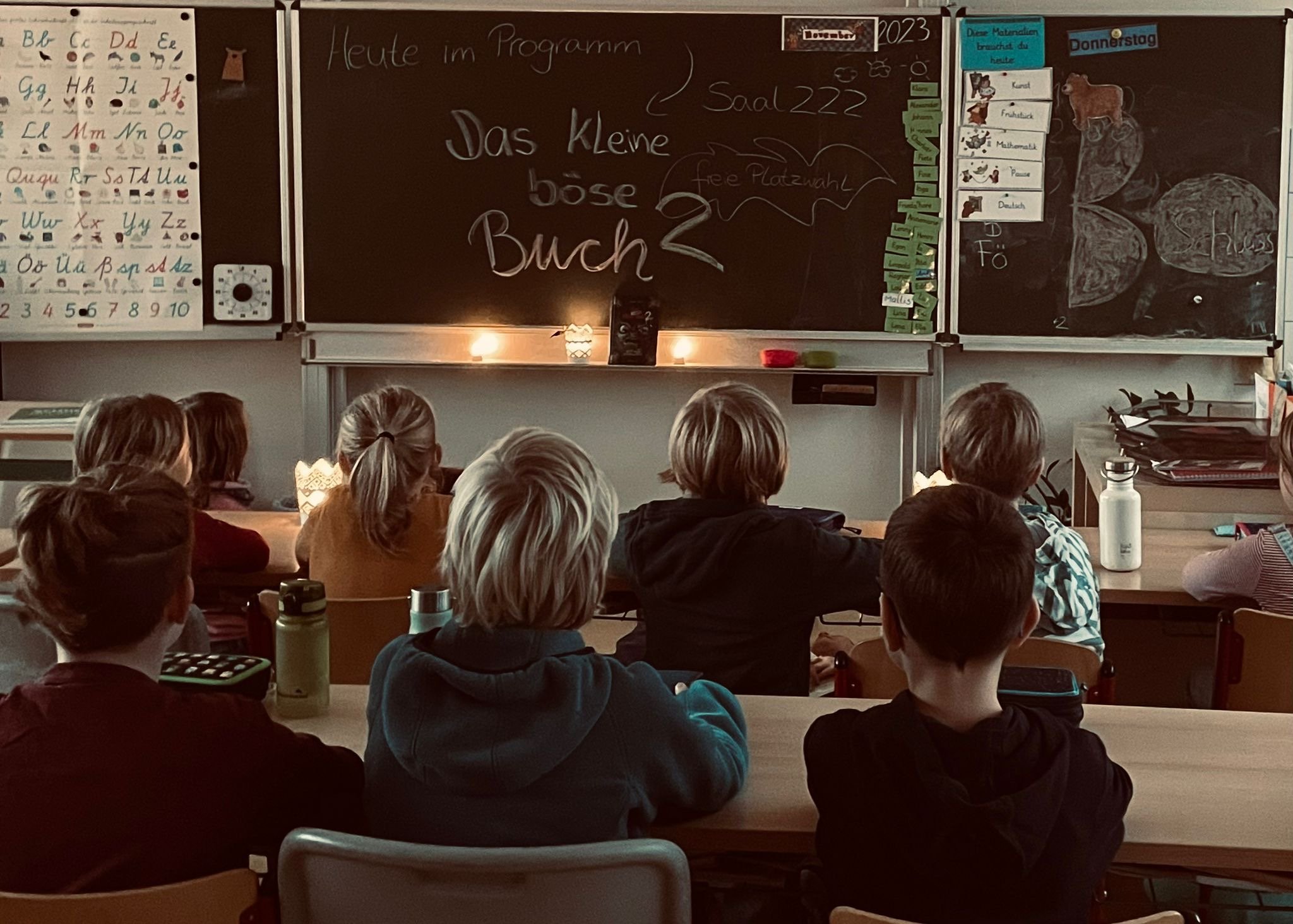 Am 17. November 2023 fand für alle unsere Kinder das 1. Hörkino statt. Engagiert organisiert haben es gemeinsam mit unserer Bundesfreiwilligendienstlerin Neele unsere Kolleginnen Inka Rodi und Katharina Altmann. Jede/ r Vorleser/ in hatte im Vorfeld ein Buch zum Vorlesen ausgesucht und öffentlich an einer Aufstellwand präsentiert. Einen Tag vorher haben sich alle Kinder ihre Eintrittskarte abgeholt. Besonders spannend war der Vorlesetag selbst, denn es musste morgens erst einmal geschaut werden, in welchem Raum welches Buch dargeboten wurde. Auch haben die Vorleser/ innen überall für die zum Buch passende Stimmung gesorgt, sodass dieses erste Hörkino an unserer Schule von allen Beteiligten als gelungene gemeinsame Schul-Veranstaltung bewertet wurde.