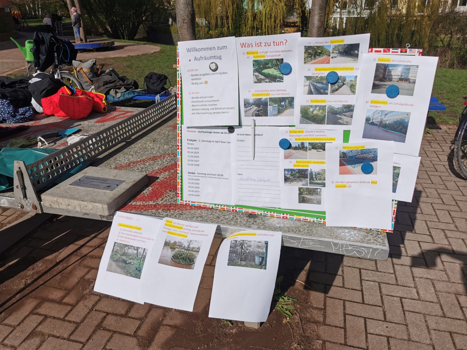 - Müll wurde auf und um den Schulhof herum gesammelt,