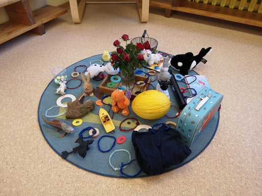 - sensomotorische Übungen, wie in den Sand spuren, Fühlkiste usw.