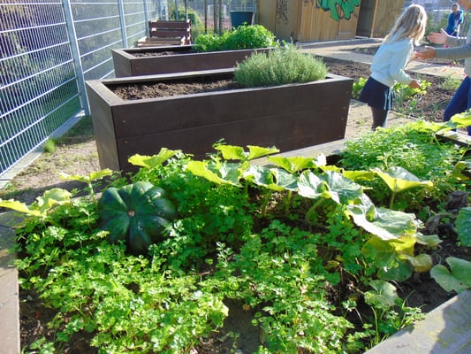 Der Schulgarten, ein Ort um praktische Naturerfahrungen zu machen, befindet sich direkt auf unserem Schulgelände.